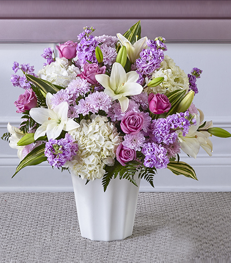 One of the most breathtaking arrangements is the Heaven Sent Floor Basket, which captures the essence of blessings and prayers sent from above. This arrangement features a carefully curated mix of lavender and white blooms that are arranged to bring comfort and solace to those who are grieving. The Heaven Sent Floor Basket is designed to provide a sense of tranquility and peace during difficult times, with delicate lilies that symbolize the hope and renewal that can come from the healing process.